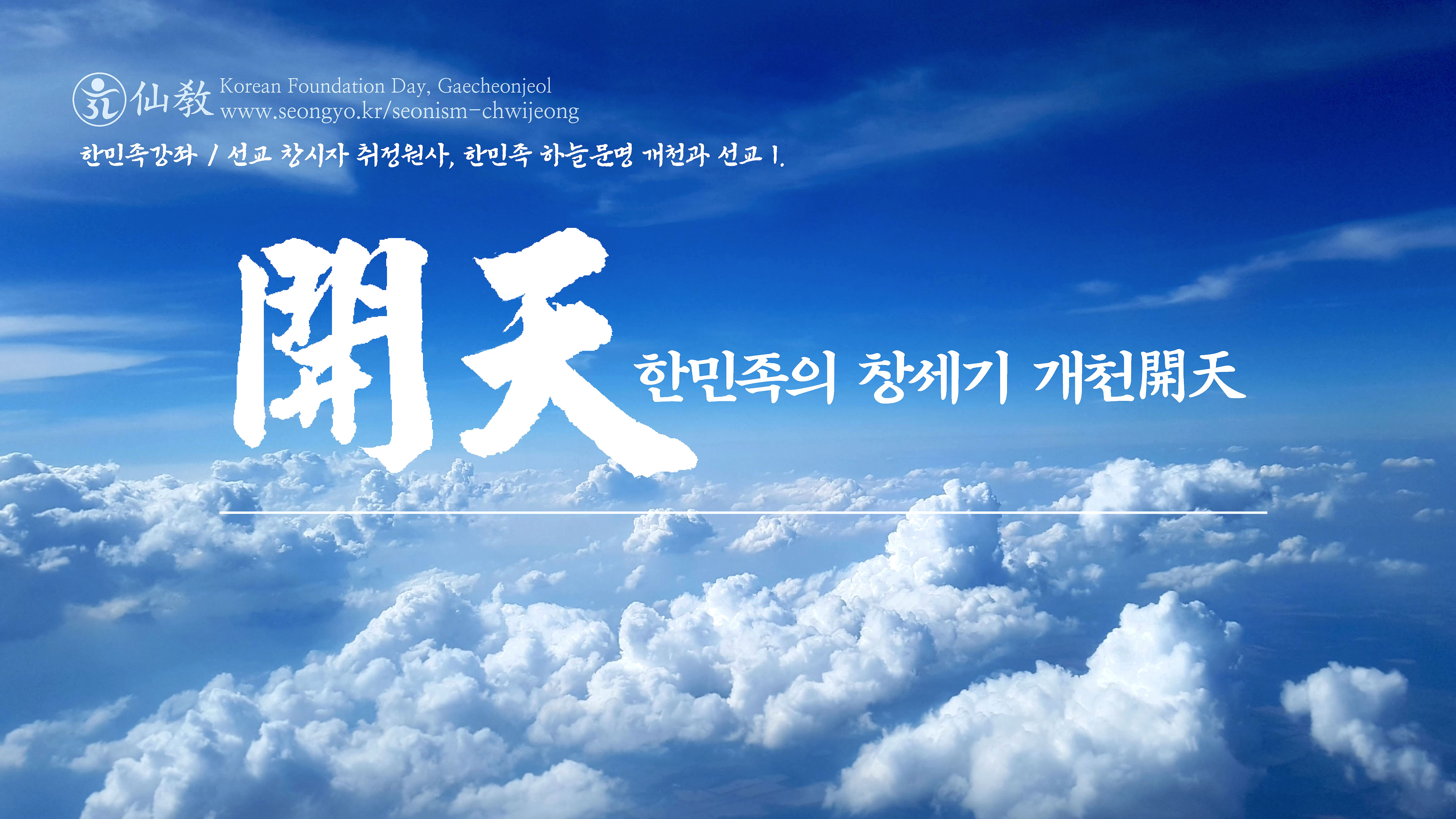 한민족 고유종교 선교(仙敎)는, 본래(本來)의 개천절(開天節)인 음력 개천절(陰曆開天節)에 개천대제(開天大祭)를 봉행하고, 국경일인 양력 개천절에는 창교주 취정원사님의 한민족강좌와 교화천제를 통해 올바른 역사관 확립과 민족혼의 부활, 환인 하느님의 자손인 한민족의 민족정신 고취를 위해 노력해왔습니다.